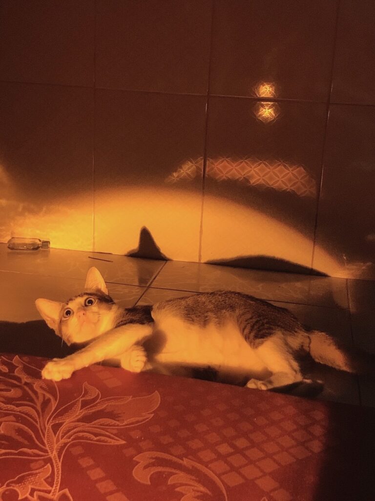 Chiếc lá chao rơi không còn làm con mèo già thích thú